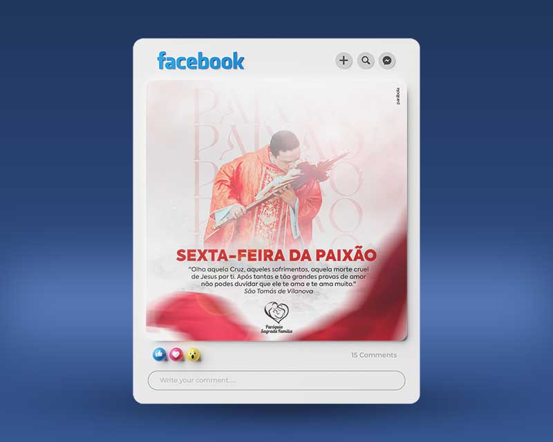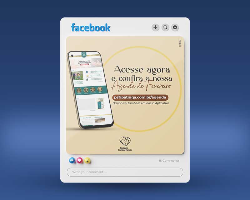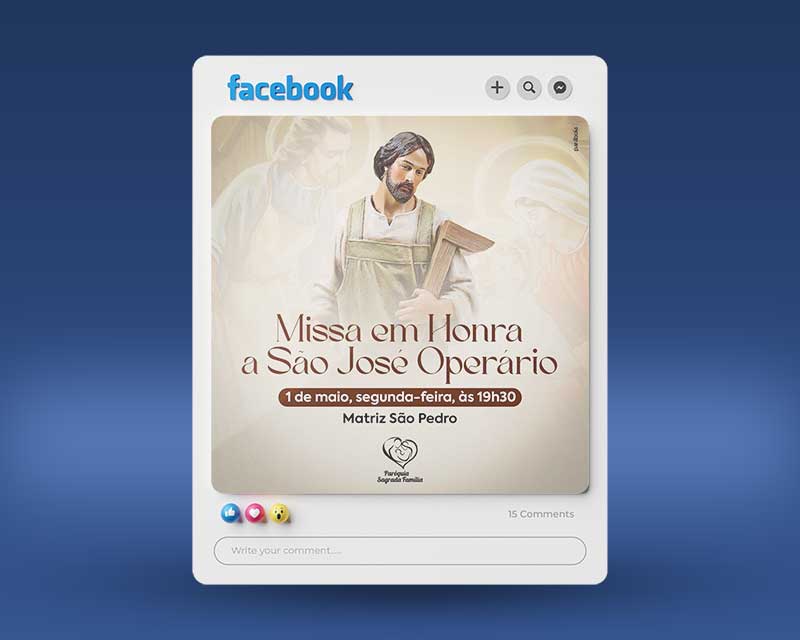 Criação de peças gráficas e gerenciamento de redes sociais para a Paróquia Sagrada Família em Ipatinga (MG).