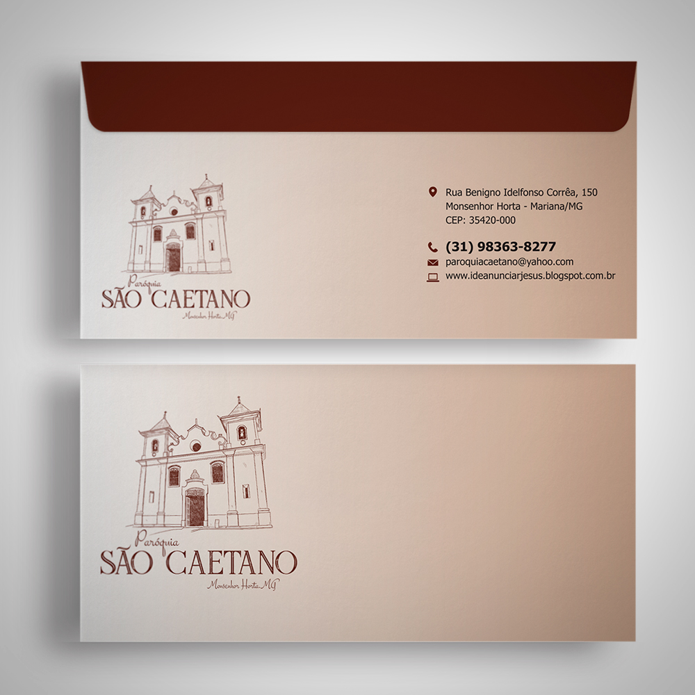 Desenvolvimento de Identidade Visual para Paróquia São Caetano em Monsenhor Horta (MG). Foram criados Logotipo, Folder, Camisa, Cartaz e demais peças gráficas.
