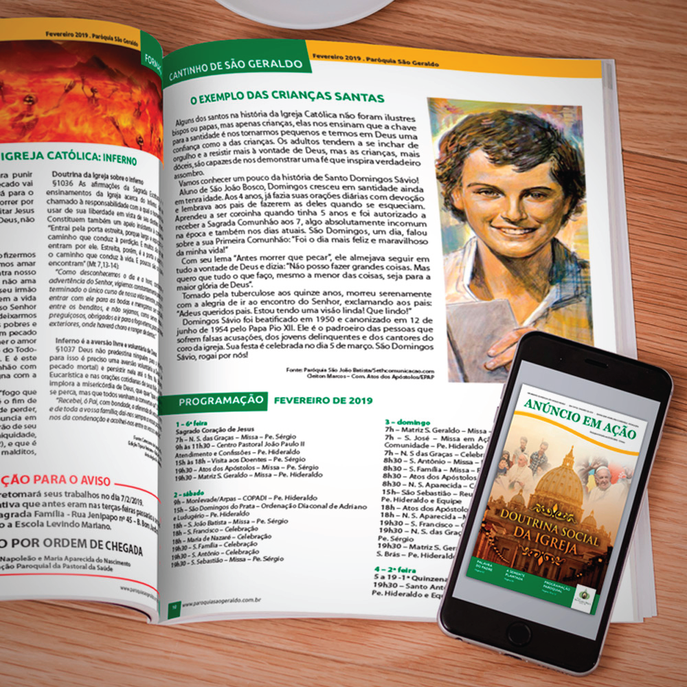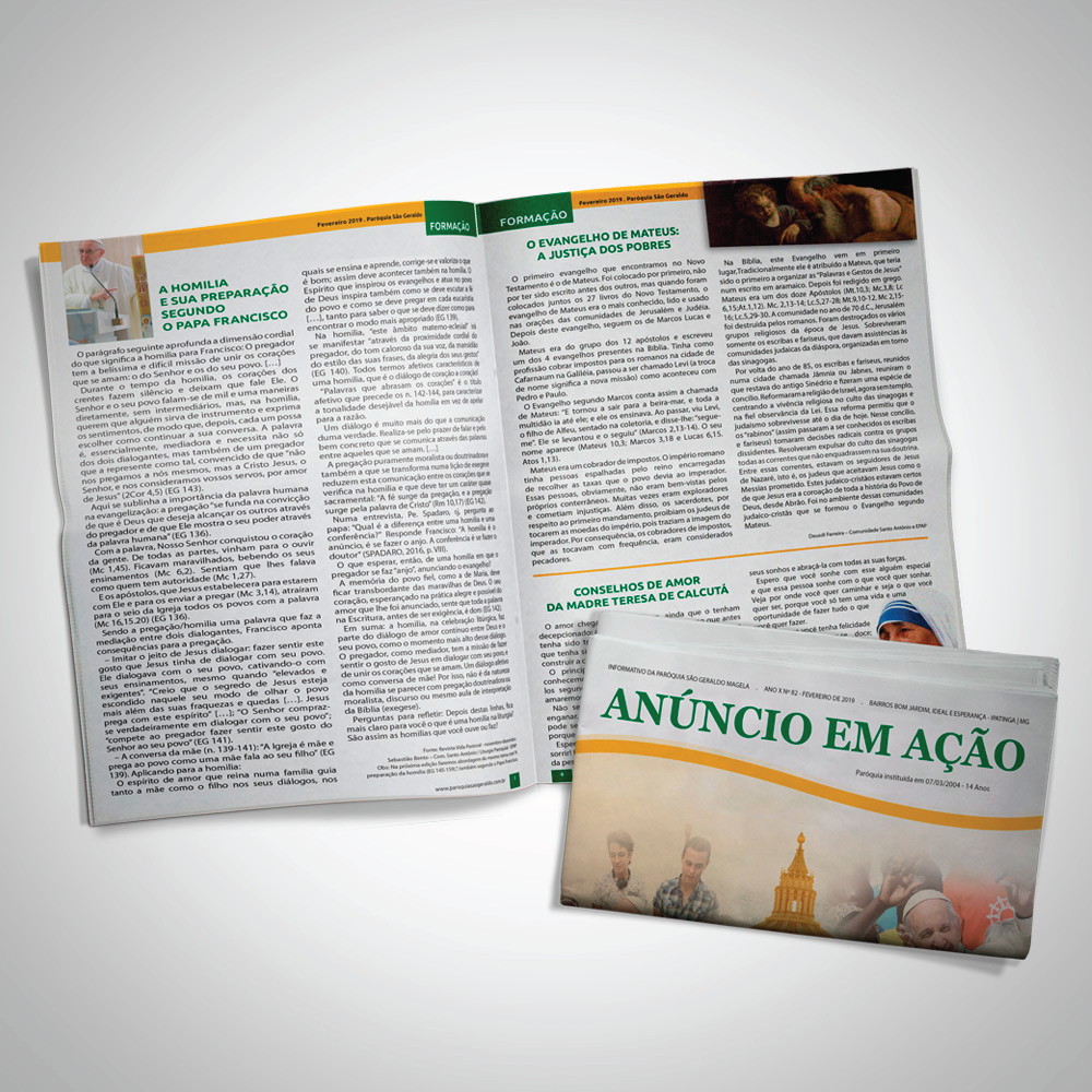 Diagramação de Informativo Paroquial para a Paróquia São Geraldo em Ipatinga (MG).