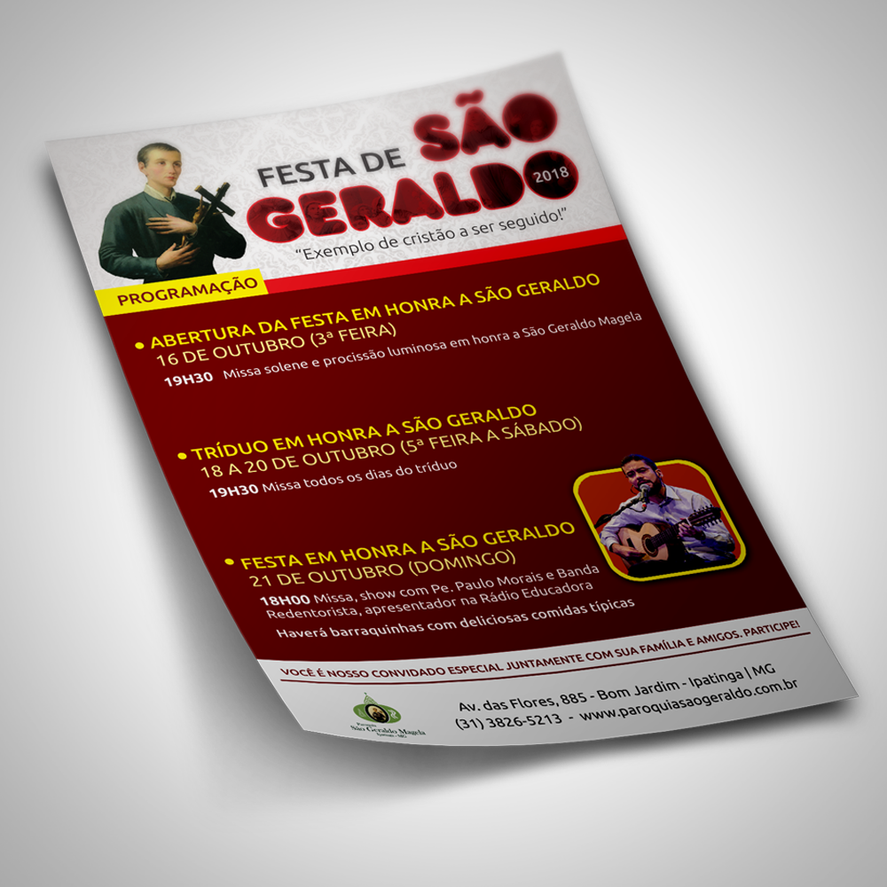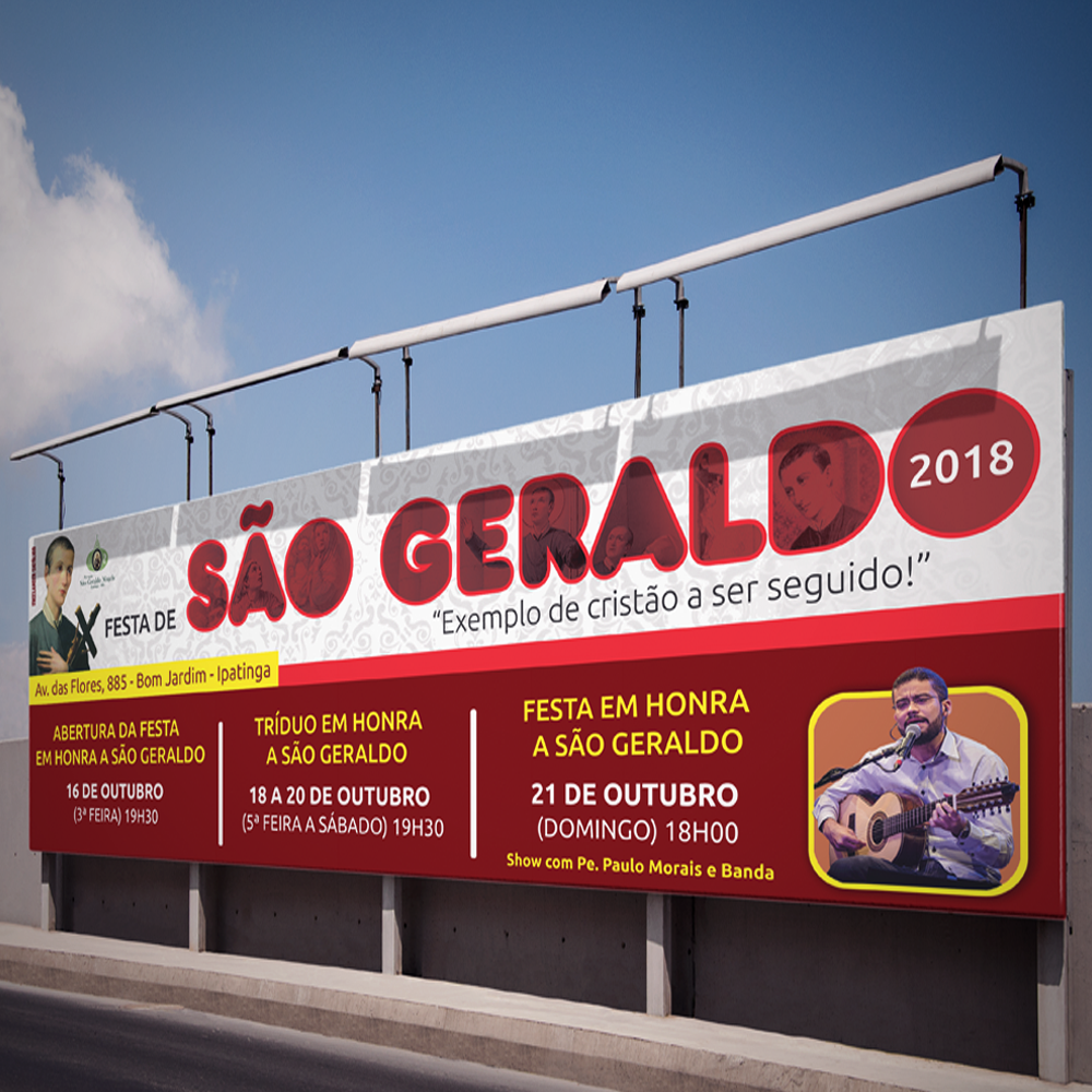 Desenvolvimento de Identidade Visual para a Festa de São Geraldo em Ipatinga (MG). Foram criados Logotipo, Folder, Camisa, Cartaz e demais peças gráficas.
